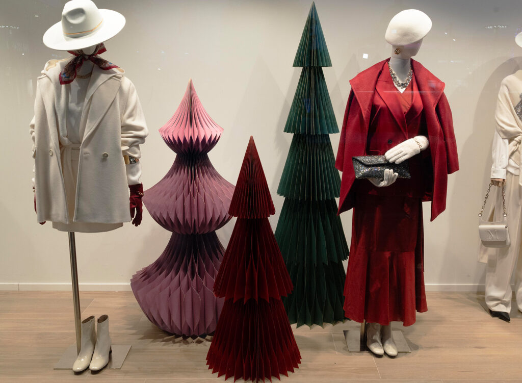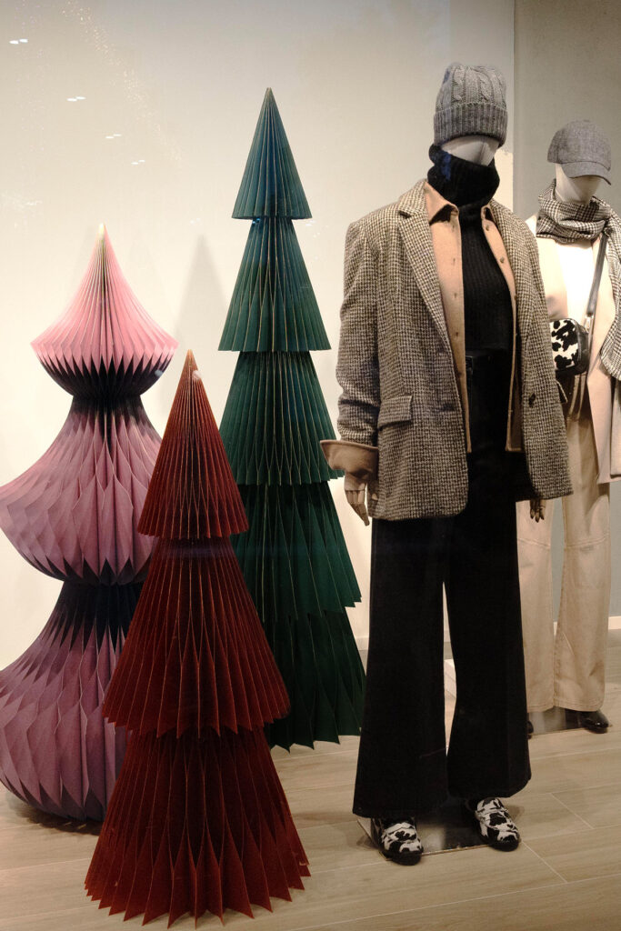 Le vetrine Intrend si accendono per le festività grazie ai nostri alberi in carta a nido d’ape. Per questo progetto, che coinvolge l’intera rete italiana ed estera, il cliente ha scelto una palette ricercata: Rosso Bordeaux, Verde Bosco e Rosa Antico impreziositi da un raffinato profilo dorato.